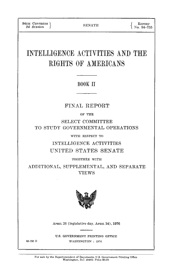 | Book II: Intelligence Activities and the Rights of Americans |