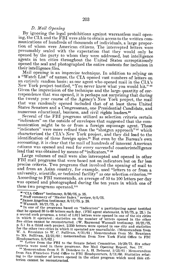 Return to:   Book II: Intelligence Activities and the Rights of Americans |