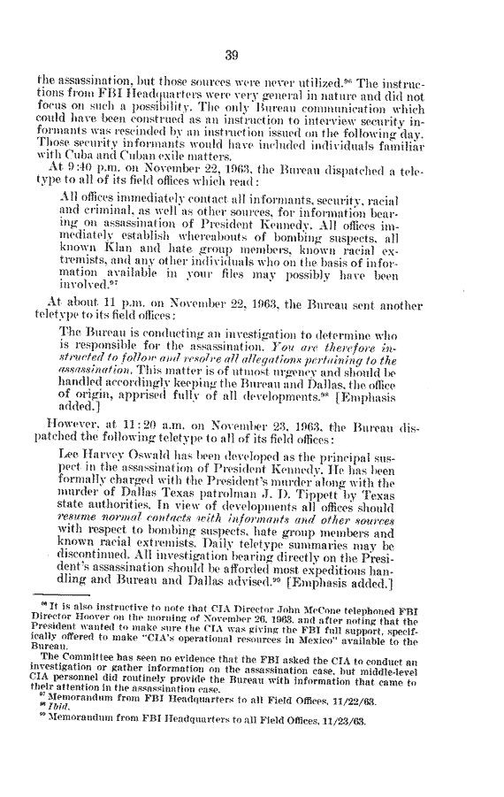 Return to:   Book V: The Investigation of the Assassination of President J.F.K.: Performance of the Intelligence Agencies |
