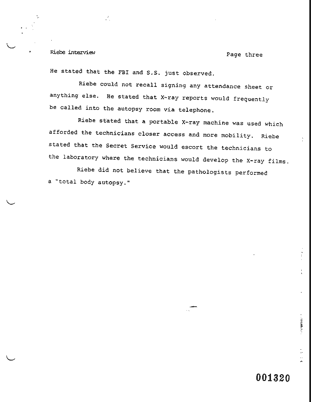 | MD 141 - HSCA Interview Report (#014464) prepared by Mark Flanagan, transcribed May 12, 1978, recounting results of Telephonic Interview of Mr. Floyd A. Riebe on 4/30/78 |