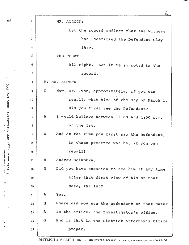 Return to:   Clay Shaw Trial Transcripts