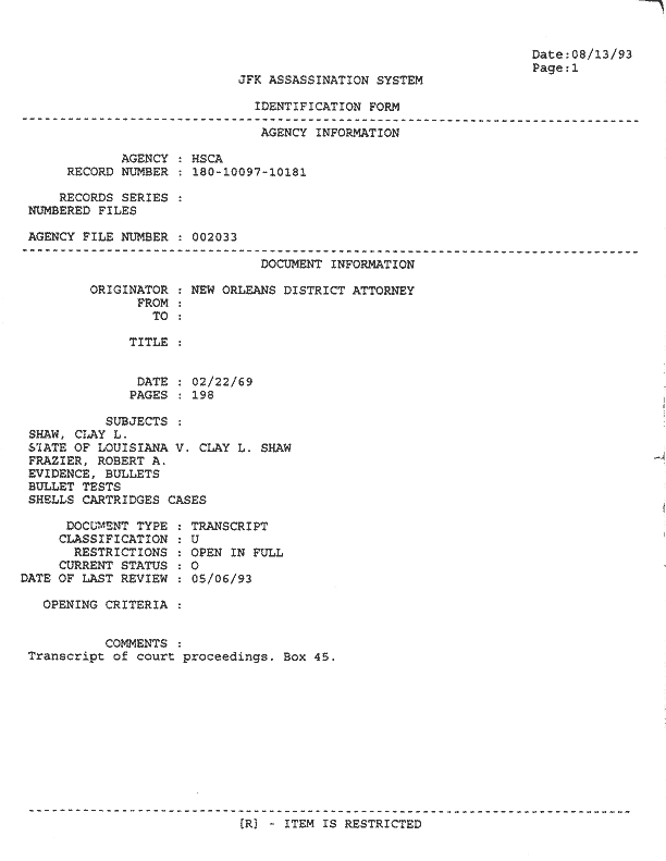 Return to:   Clay Shaw Trial Transcripts