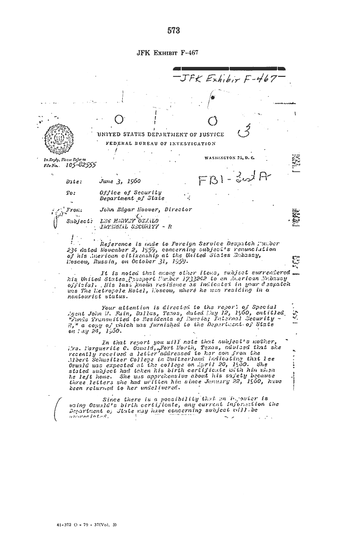 Return to:   HSCA Hearings - Volume III