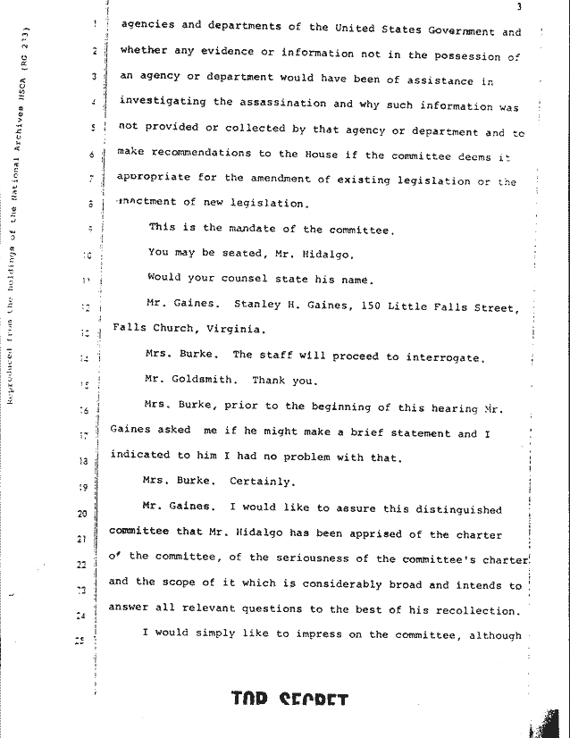 Return to:   HSCA Security Classified Testimony