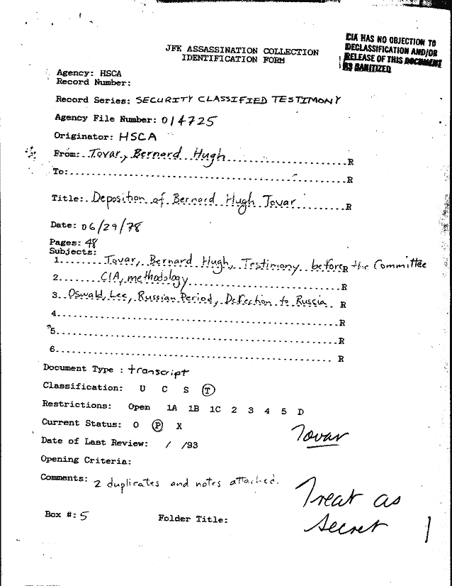 Return to:   HSCA Security Classified Testimony