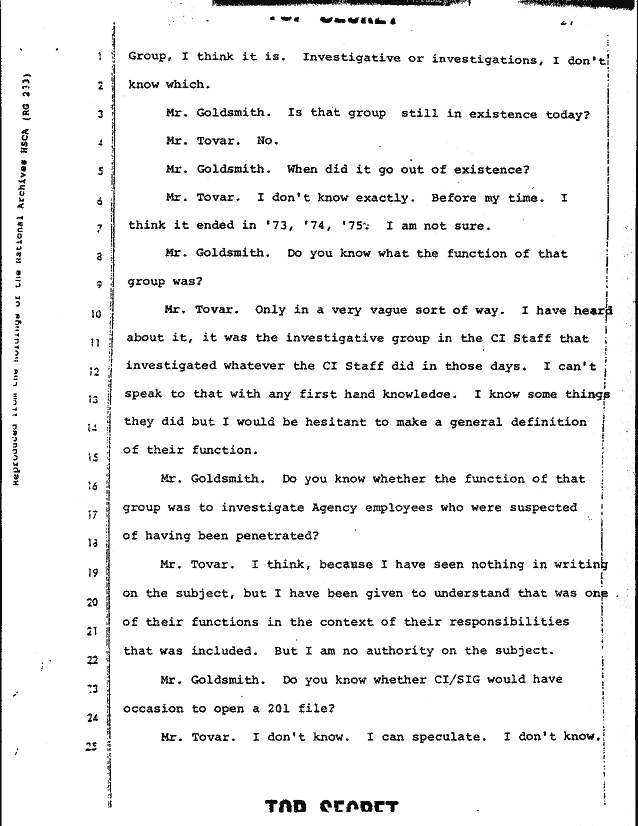 Return to:   HSCA Security Classified Testimony