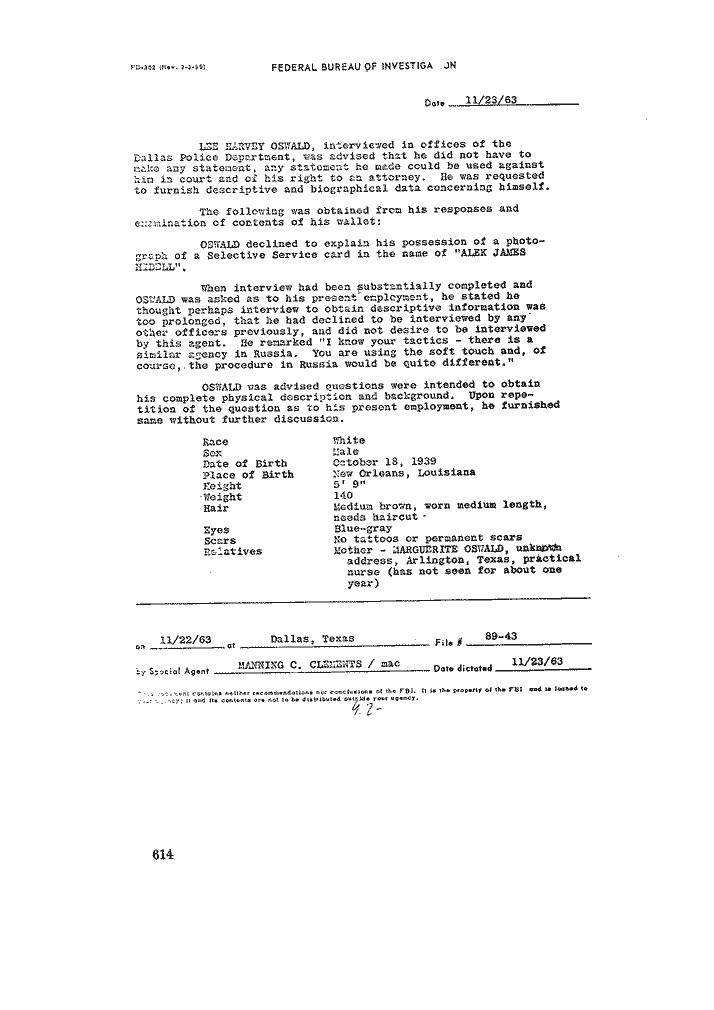 Return to:   Warren Report