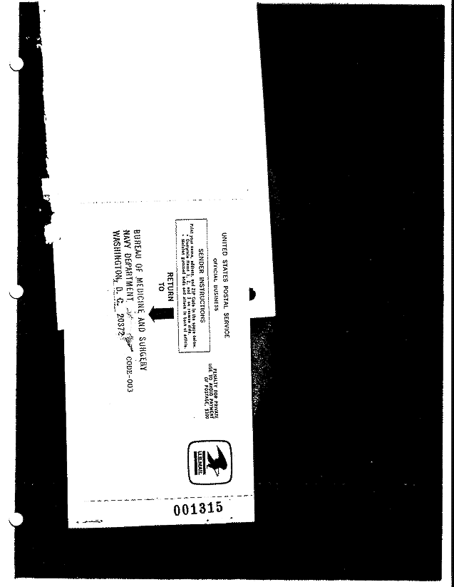 | MD 140 - Letter from Vice Admiral W. P. Arentzen, MC, USN (Navy Surgeon General) to Mr. Floyd Albert Riebe, dated March 13, 1978, and accompanying envelopes and return receipt post card indicating letter was undeliverable |